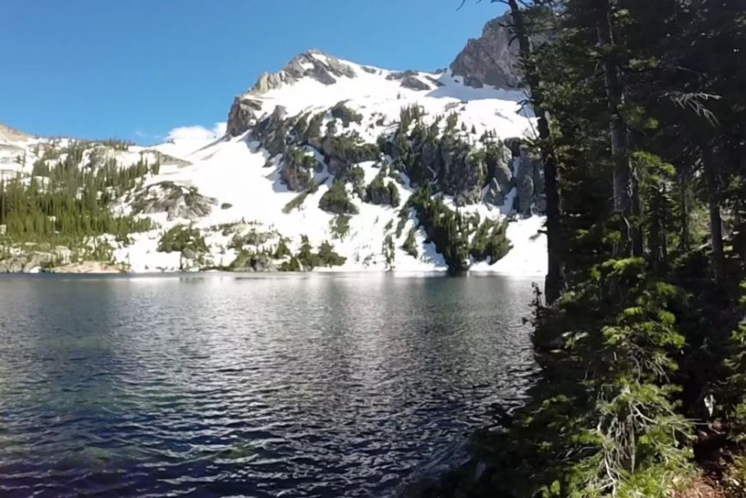 Alpine Lake is an alpine lake in Custer County, Idaho, United States, located high in the Sawtooth Mountains in the Sawtooth National Recreation Area. The lake is approximately 6.3 mi (10.1 km) southwest of Stanley. A trail from the Iron Creek trailhead and campground leads approximately 5 miles (8.0 km) to Sawtooth Lake. The Iron Creek trailhead can be accessed from State Highway 21 via Sawtooth National Forest road 619. There is another lake with the name Alpine Lake in the central part of the Sawtooth Wilderness.